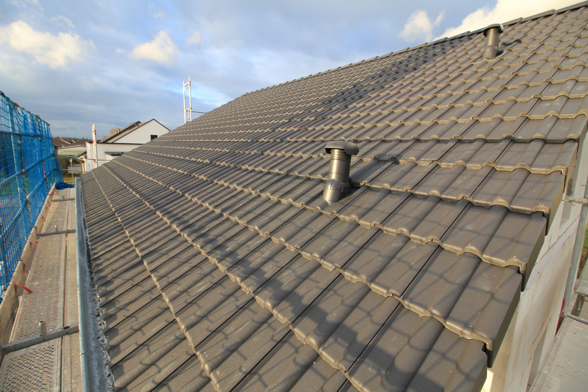 Und dann sind auch schon die Ziegel auf dem Dach. Somit ist der Rohbau Geschichte und das nächste Kapitel der Bauphase kann beginnen.