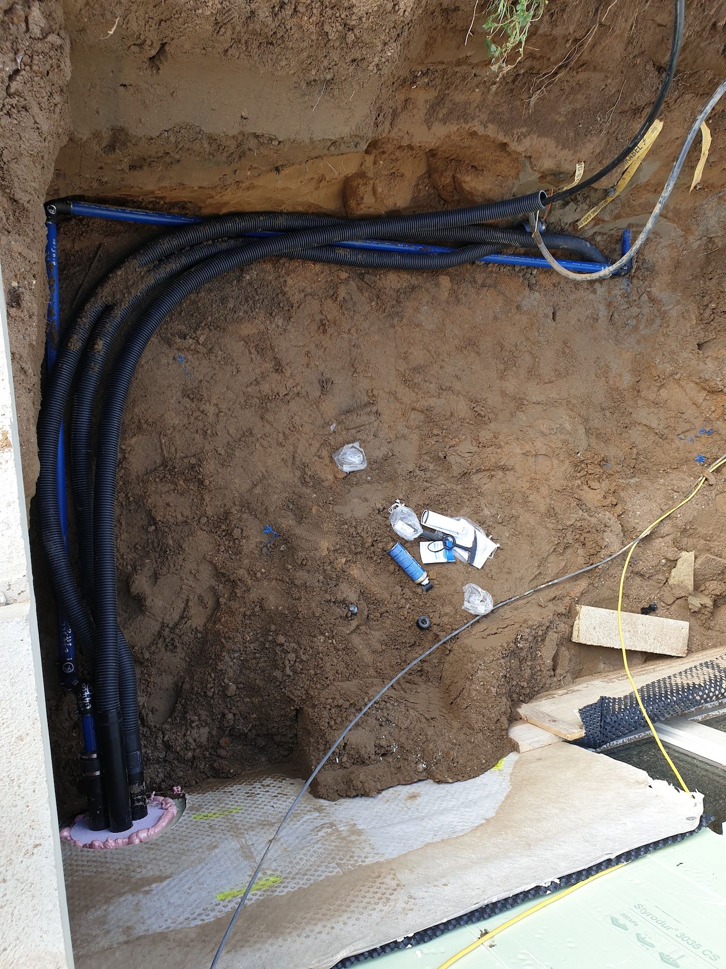 Der Hausanschluss musste ein paar mal geändert werden. Leider war an der Stelle wo der Hausanschluss geplant war schon der Potenzialausgleich. Somit musste die geplante Position der Mehrsparte nochmals verändert werden. Nach hitzigen Diskussionen hat es mit dem Wasseranschluss dann doch geklappt. Der Stromanschluss wird wegen einem Missverständnis erst nächste Woche angeschlossen.