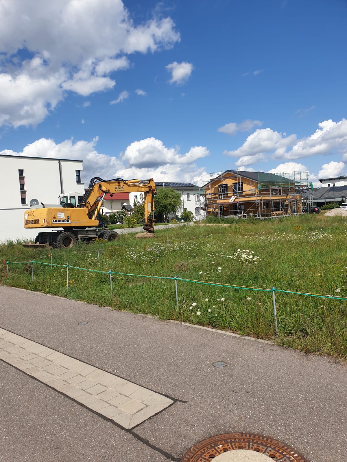 18 August 2019 / baugrube / bagger Es geht los, der Bagger ist da Seit heute Morgen ist es soweit: Der Bagger ist da. Somit beginnt der praktische Teil unseres Bauvorhabens.
